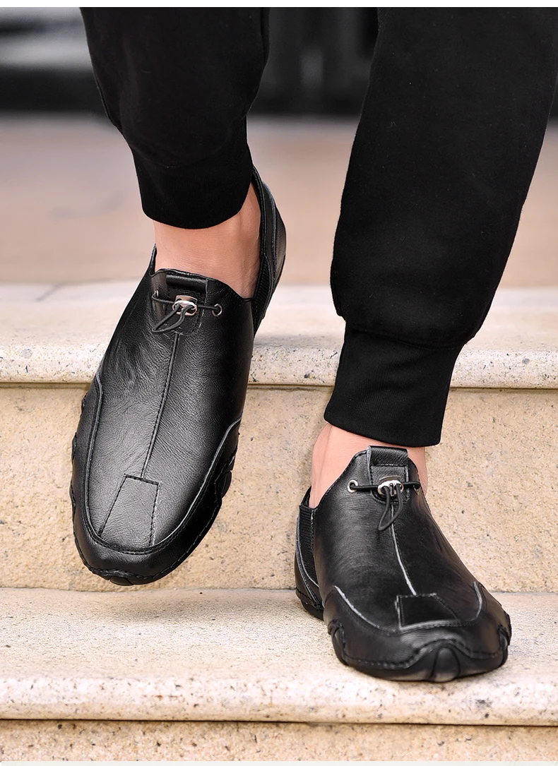 Fashion Men Leather Loafers Flats Sewing Slip-On Casual Shoes