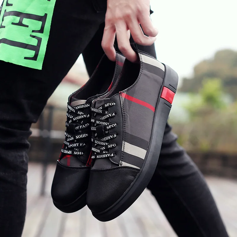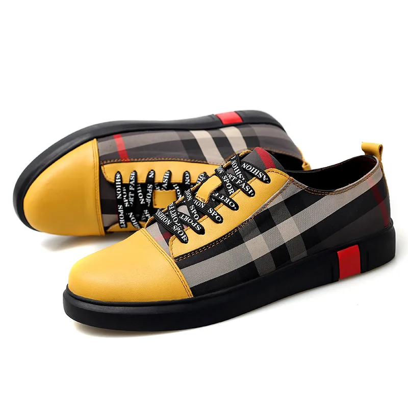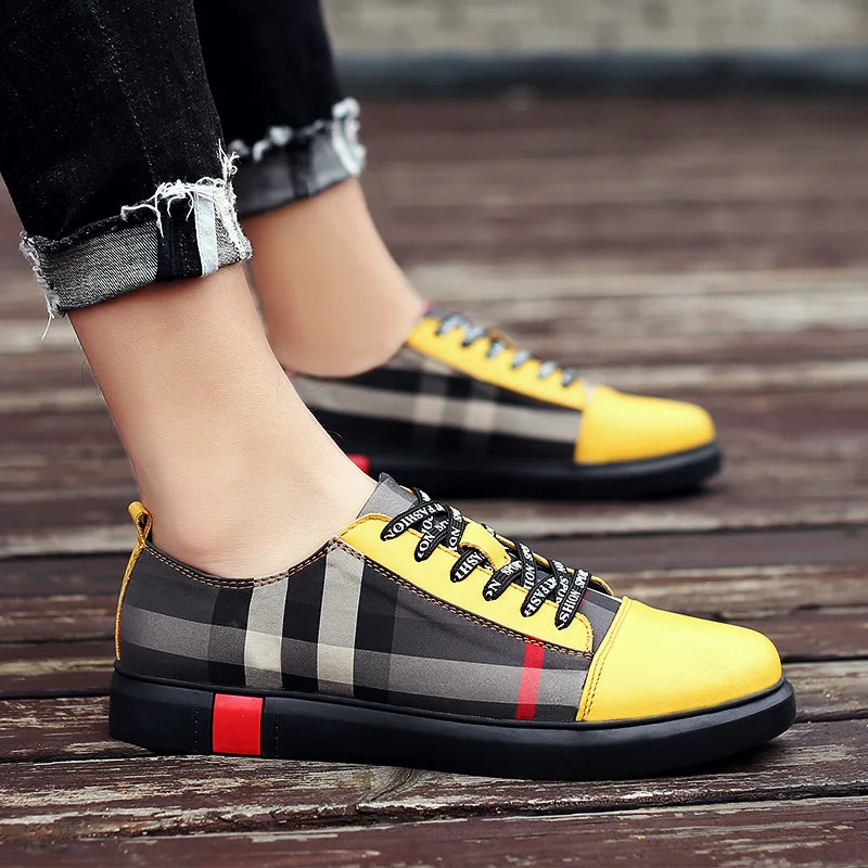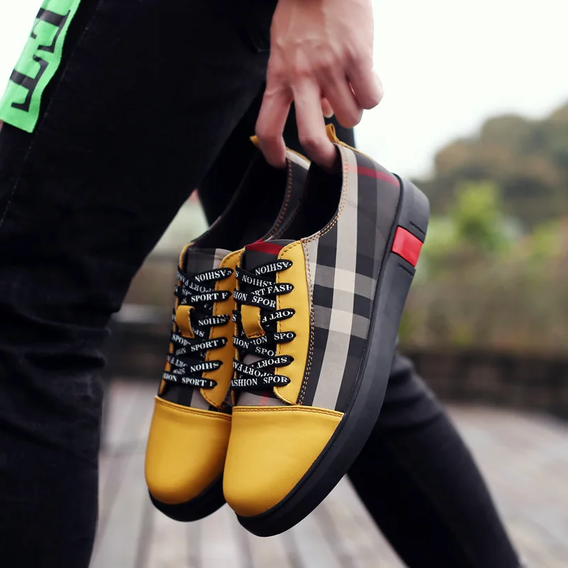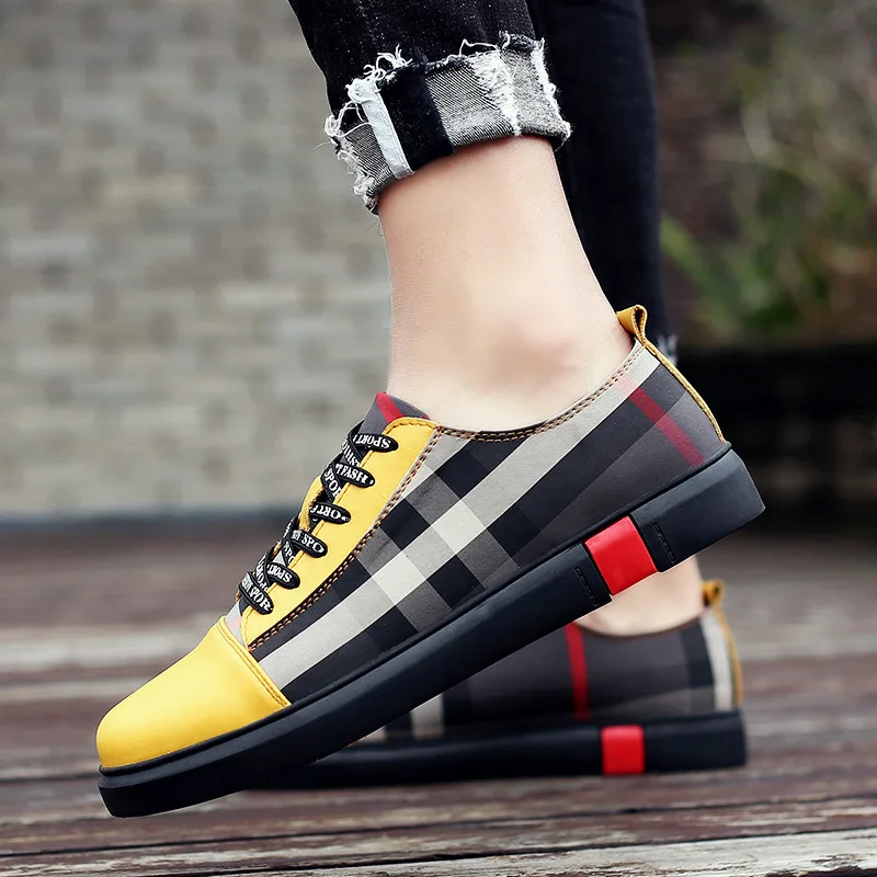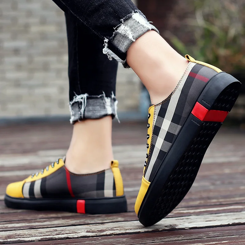 Men Breathable Wear Resisitant Lace Up Plaid Pattern Plat Shoes