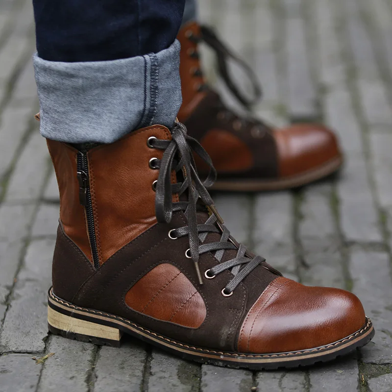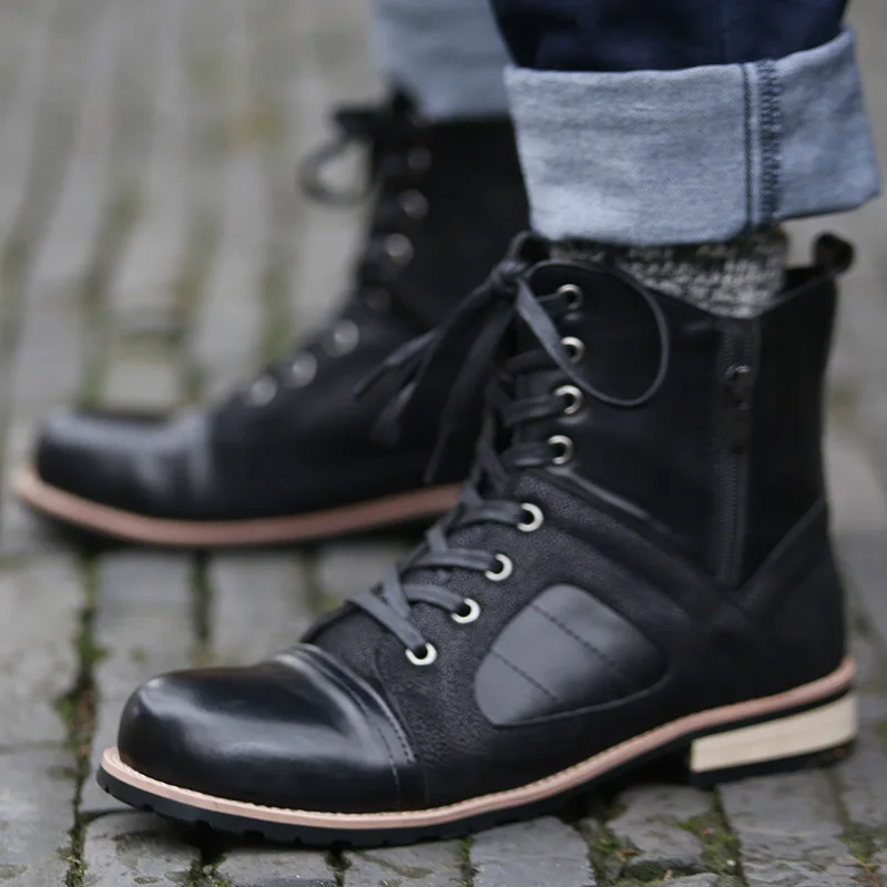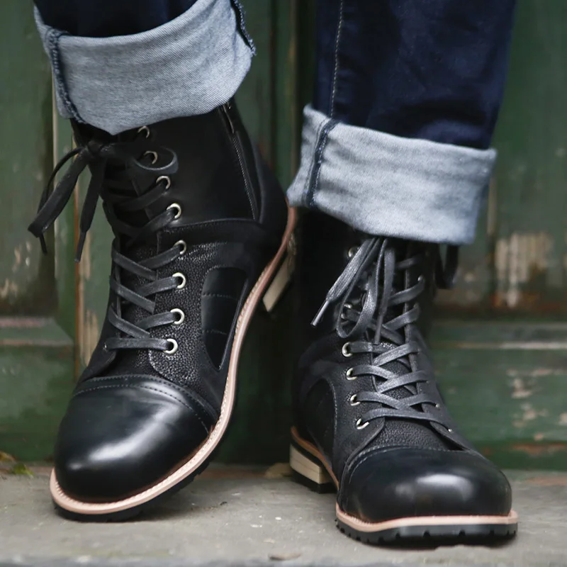 Fashion Autumn Winter Lace-up Roman Style Men Ankle Boots