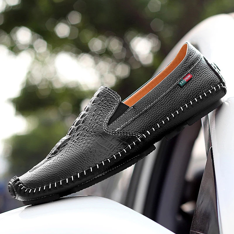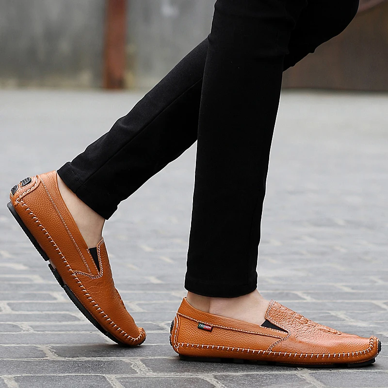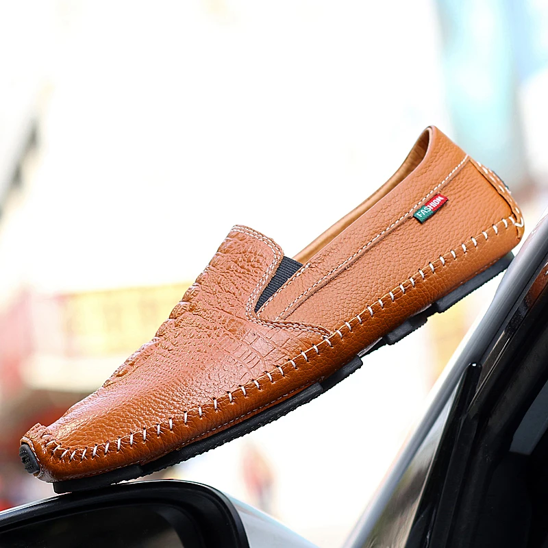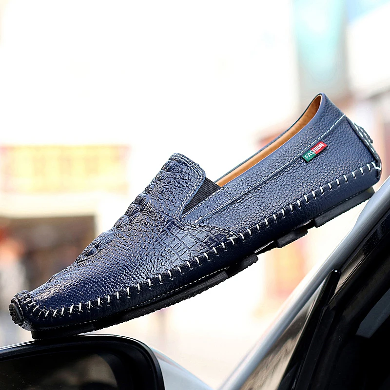 Luxury Crocodile Pattern Genuine Leather Moccasin Men Loafers Driving Shoes