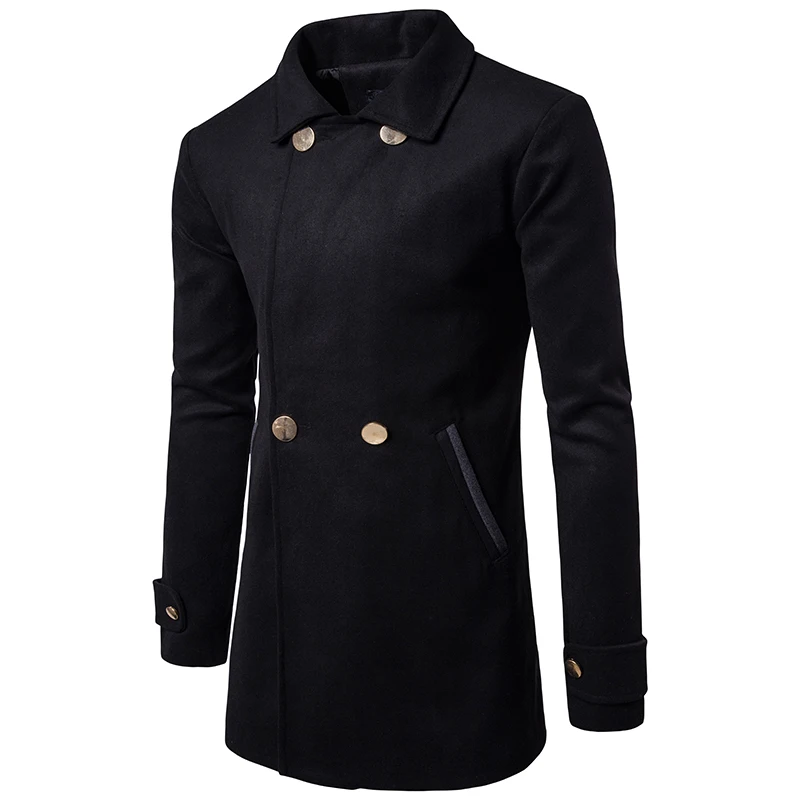 Men's New Fashion Autumn And Winter Button Casual Long Section Wool thick Warm Coat
