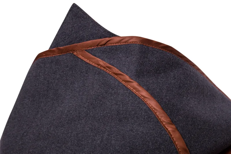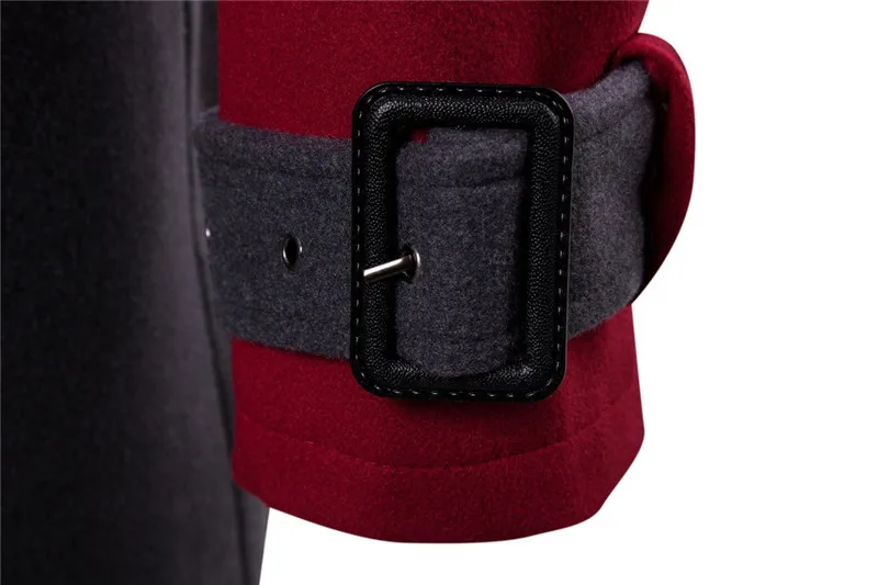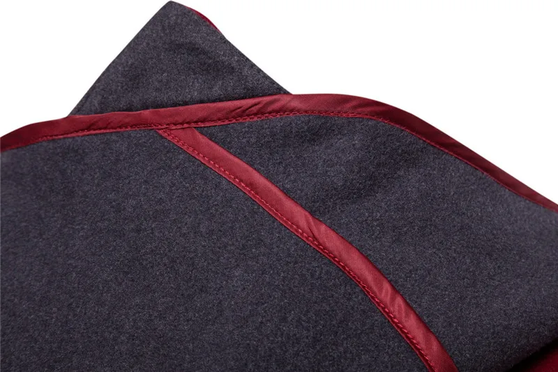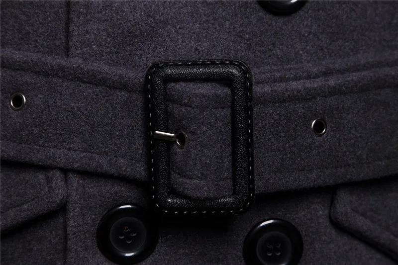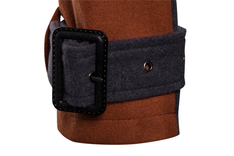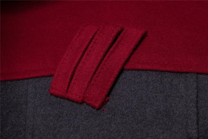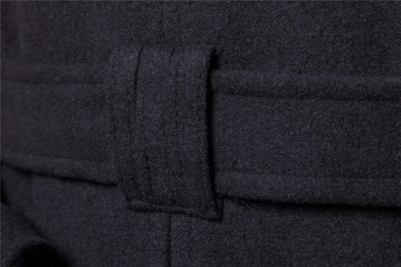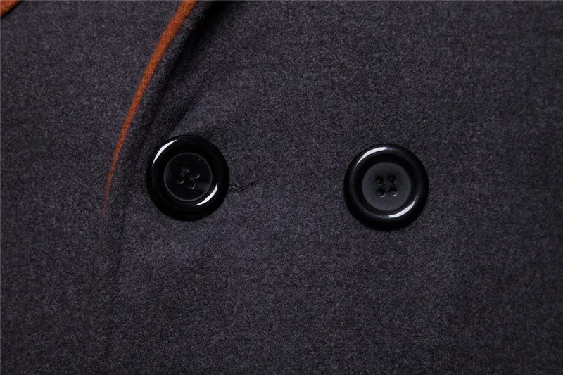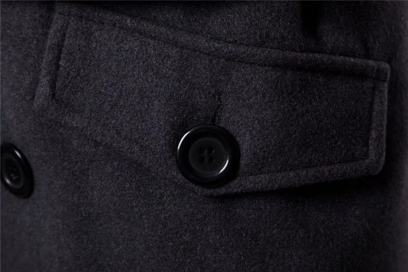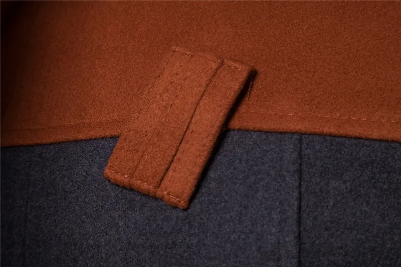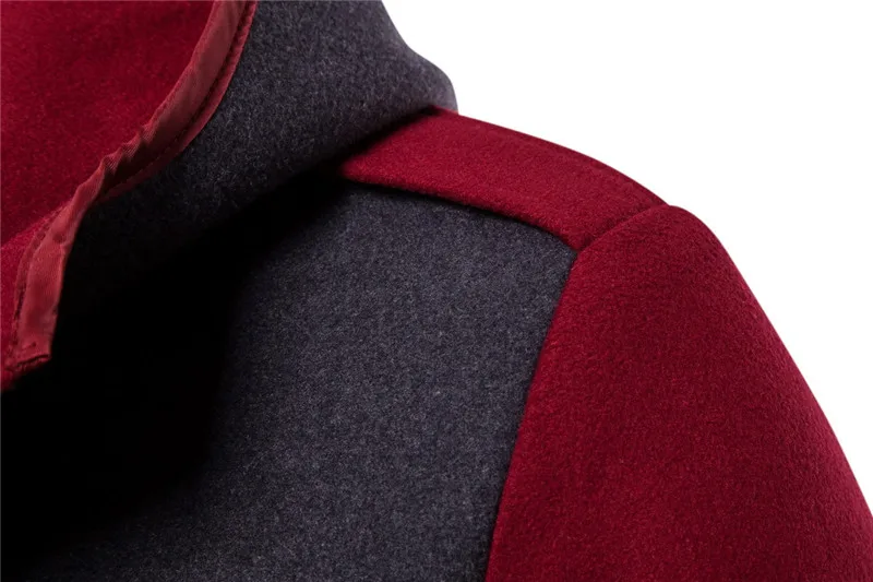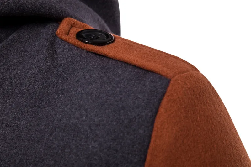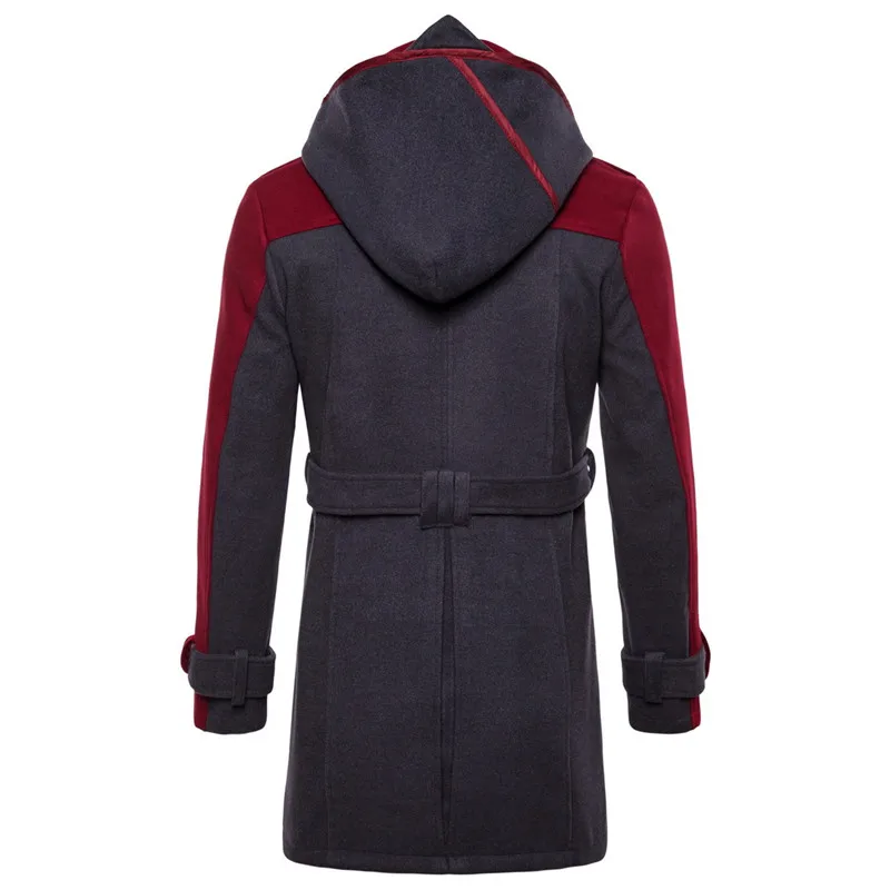 Fashion Thicken Stitching Lapel Double-breasted Hooded Men Woolen Coats