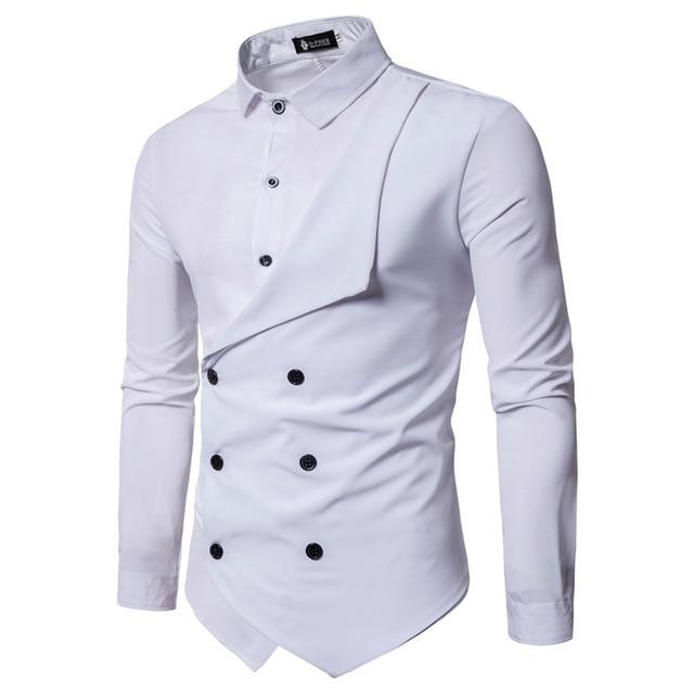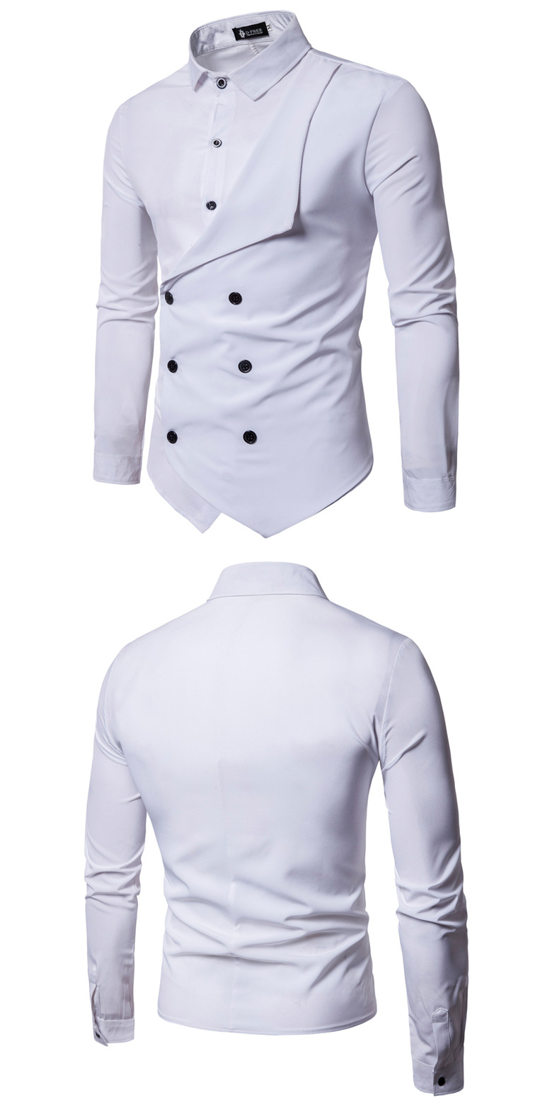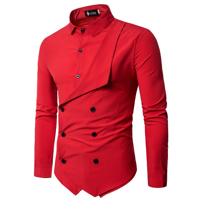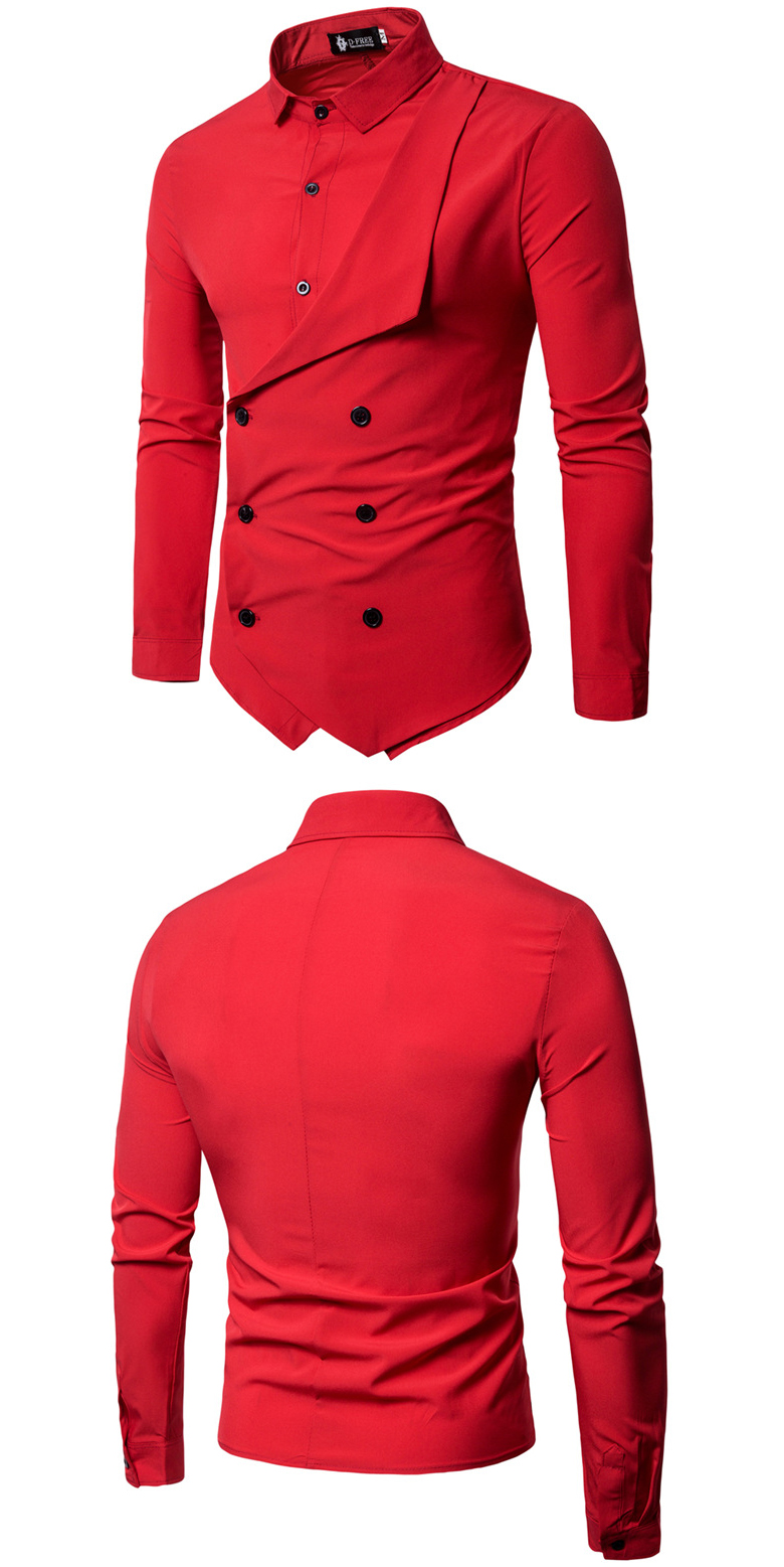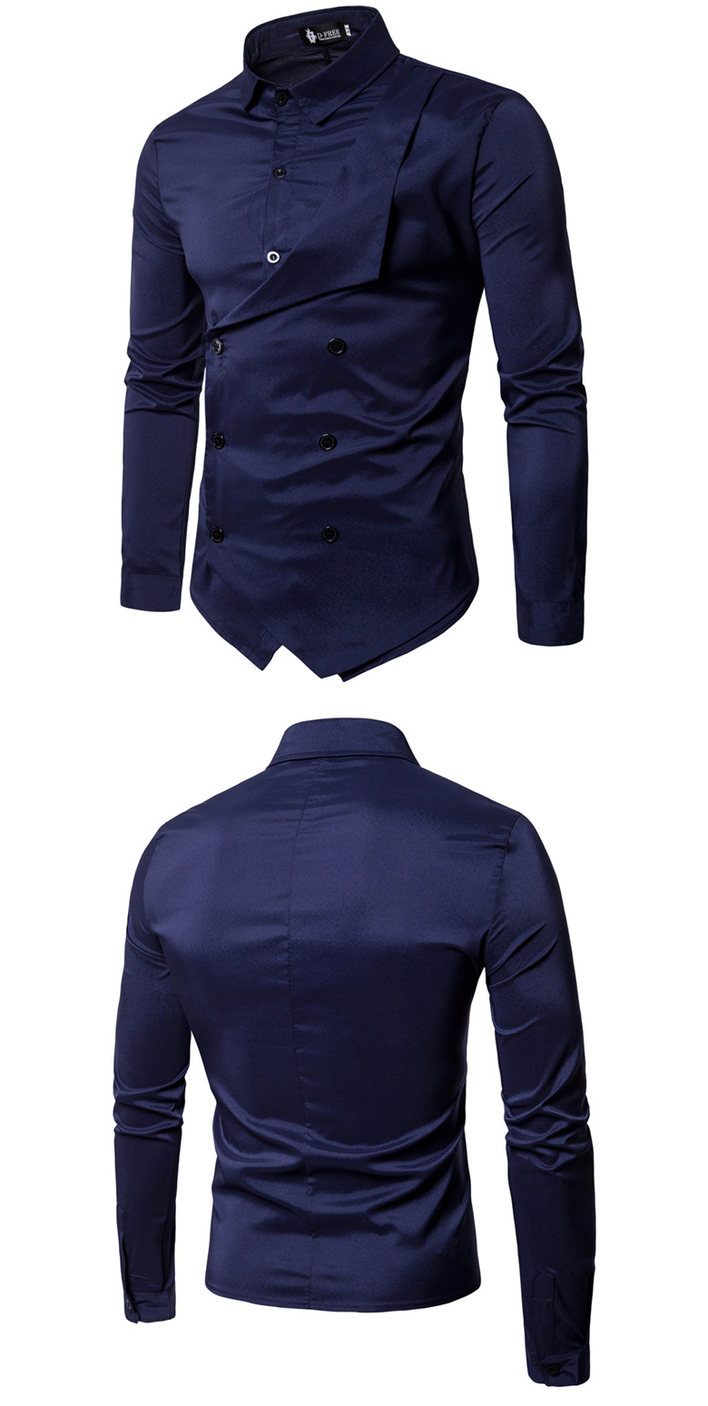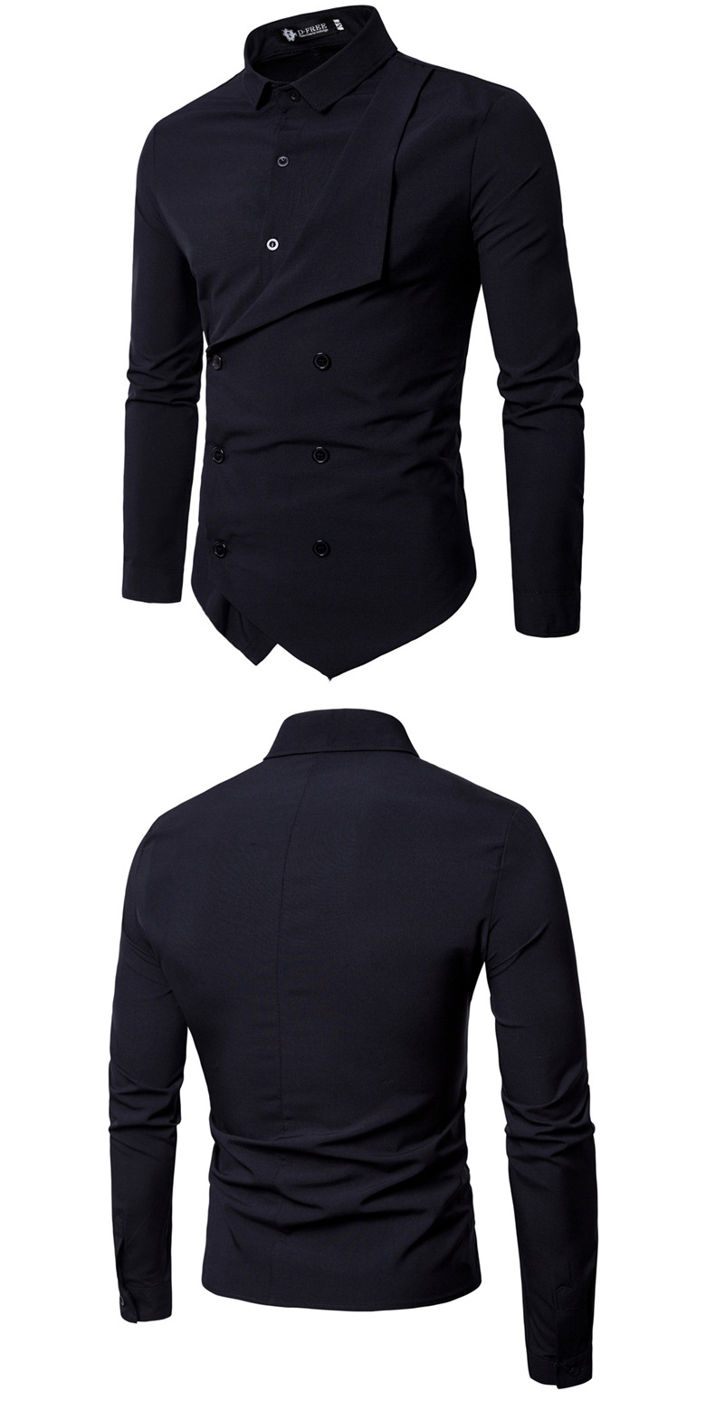Fashion Double-breasted Solid Color Slim Fit Men's Shirts
