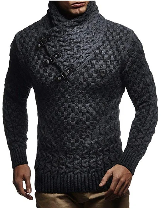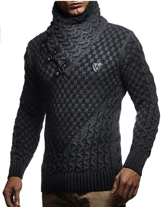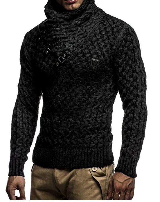 Men's Turtleneck Long Sleeve Solid Knitted r Autumn Winter Knitwear Sweater